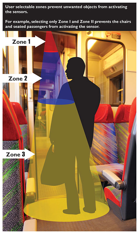 Avec les capteurs activés au contact traditionnels, l’utilisateur doit appuyer sur un bouton. Cela présente un risque de contamination pour la touche et pour la main de l’usager. Non seulement la technologie d’interrupteur sans contact élimine-t-elle le risque de contamination, mais elle propose également une panoplie d’activations programmables par l’utilisateur. Il est donc possible de modifier la distance par rapport au capteur requise lorsque l’utilisateur active les portes en agitant la main. De plus, les objets proches des portes qui ne doivent pas déclencher l’ouverture des portes peuvent être ignorés en changeant la distance ou la zone ciblée par le détecteur.